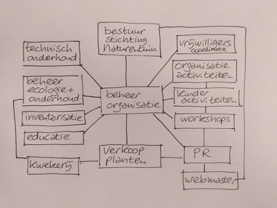 Een nieuwe droom voor de NaturentuinSeptember 2025 Zie hieronder ook de oproep, we hebben nu een begin van een organogram. We hopen dat het mensen zal inspireren om een deeltaak op te pakken. Over alles valt te praten en niks staat nog vast (hoewel... 10 oktober gaan we tekenen voor de Stichting :-)). We denken aan bijvoorbeeld een taakverdeling als "beslissende" en "uitvoerende" vrijwilliger en dat voor elke taak er twee mensen komen. Maar dat kan ook een kruisbestuiving zijn. Voor verschillende deeltaken zijn al liefhebbers. En voor de mensen die interesse hebben en mee de toekomst gaan vormgeven is er in 2026 een cursus: Ecologisch beheer van de Naturentuin (door Anneke) om alle ins en outs van vooral het terrein te leren kennen en het toekomstbestendig te maken. Maar ook om kennis te maken met elkaar en ieders kwaliteiten die elkaar weer aan kunnen vullen. Dus als je mee wilt helpen, - denken - praten stuur een bericht naar Anneke. Of naar de Anja Thijssen van de Stichting Naturentuin. We hopen van je te horen!