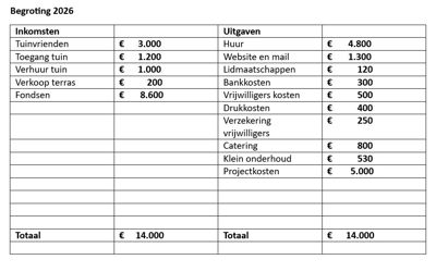 Om bovenstaande te realiseren hebben we het Project ‘Toekomstbestendig maken van de Naturentuin’ opgezet. 9. Jaarlijkse activiteiten in de Naturentuin De activiteiten in de tuin zijn erop gericht om inspiratie op te doen voor ecologisch tuinieren en dit te bevorderen middels educatieve activiteiten zoals: